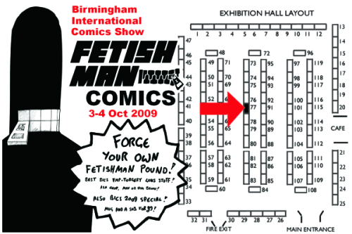 issue ten’s shaping up nicely, I’m trying to track down the first subscribers to ask if they wish for more hot posted-fetishman-comic action, the fetishman banknotes need collecting, the whitby almanack heads to the printers soon, and rising like a leviathan from the fog of sleep deprivation comes the birmingham international comics show 2009. WHICH IS GOING TO BE SO MUCH FUN! entirely mavis-ed up and ready to roll, join us on the 2-4 october if you’re about.