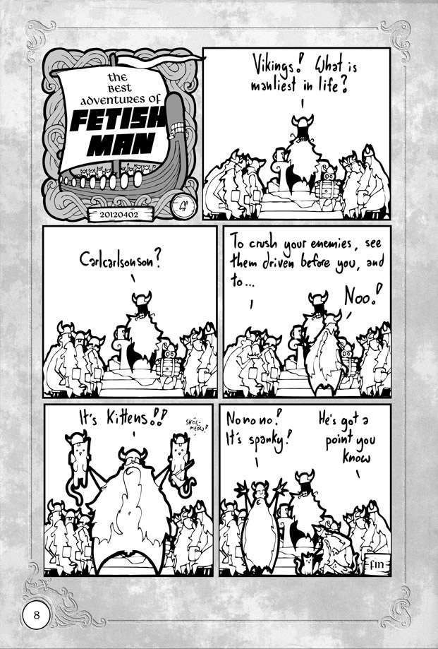 FETISHMAN RETURNS!!! Today we upload a large, throbbing package – overflowing from the brim with glorious Fetishman pages. First – the whole of Issue #15, The Vikings Issue part 1. Then, regular updates shall return with #16 – part 2.[…]↓ Read the rest of this entry…